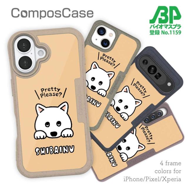 コンポスケース & 着せ替え デザインシート セット Google Pixel9a Pixel9 Pro XL Pixel8a Pixel8 Pro Xperia 10 V ケース 背面 生分解性 4色 犬 イヌ 柴犬のおねだり顔_白柴(wakat)