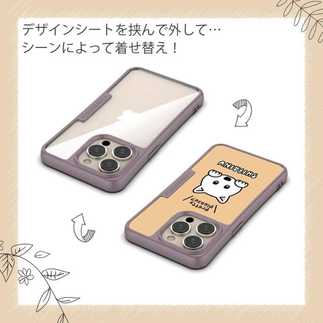 | ケースについて | 背面の内側に入れ込むデザインシートで、シーンに合わせて着せ替え可能。また、グリップしやすいクッション構造で、本体重量は約35gと軽減化を実現。さらにSライン形状で、究極に押しやすいボタン設計(切り込みが入ることで押し込む力を軽減)、背面のカメラ・レンズを保護する高さ設計となっております。生分解性プラスチック素材ながらも着脱もしやすく、割れない・指紋防止加工を施しています。 |