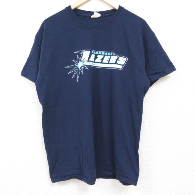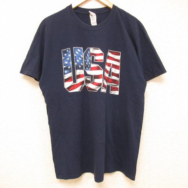 古着 半袖 Tシャツ メンズ USAロゴ 星条旗 コットン クルーネック 濃紺 ネイビー Lサイズ 中古 中古 古着