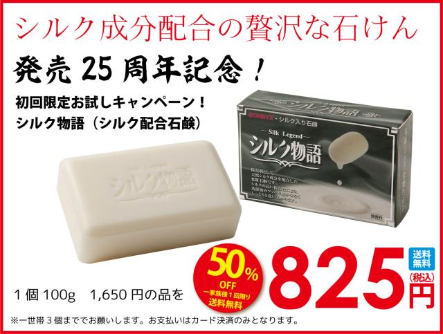 初回限定お試しキャンペーン!シルク物語 シルク石鹸 シルクパウダー配合!敏感肌・赤ちゃんにも使える優しい石鹸