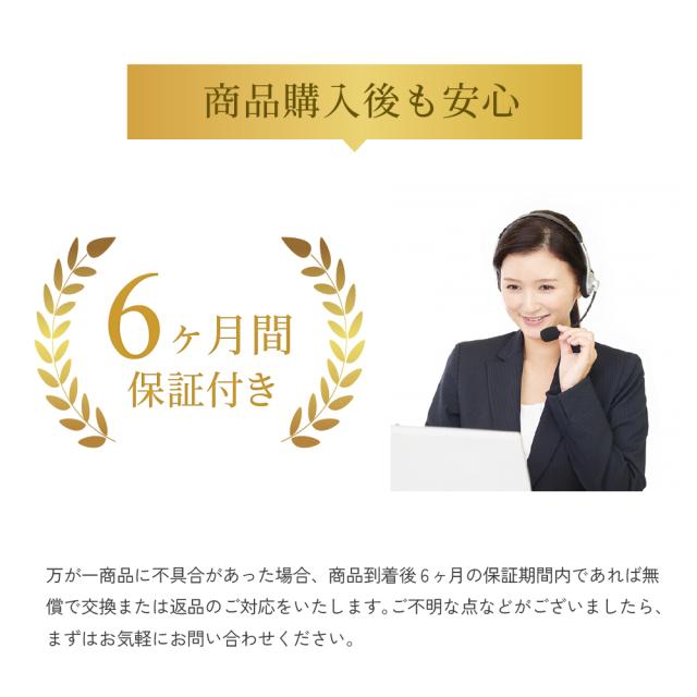 万が一商品に不具合があった場合、商品到着後6ヵ月の保証期間内であれば無償で交換または返品のご対応をいたします。ご不明な点などございましたら、まずはお気軽にお問い合わせください。