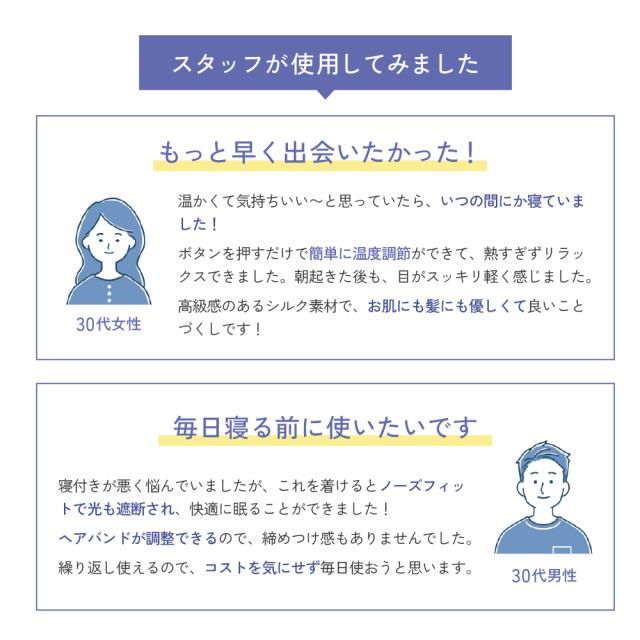 もちろん、温熱機能を使わずにアイマスクとしてもご使用いただけます。