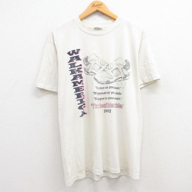 古着 ヘインズ Hanes 半袖 ビンテージ Tシャツ メンズ 90年代 90s スニーカー シューズ クルーネック USA製 生成り Lサイズ 中 中古 古着