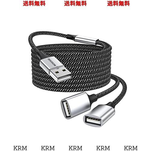 USB延長ケーブル、USB分岐器USB Aオス〜2メス延長ケーブル耐久性のあるUSB分岐器ケーブルナイロン編み高速データ伝送とプリンタ、USBキー