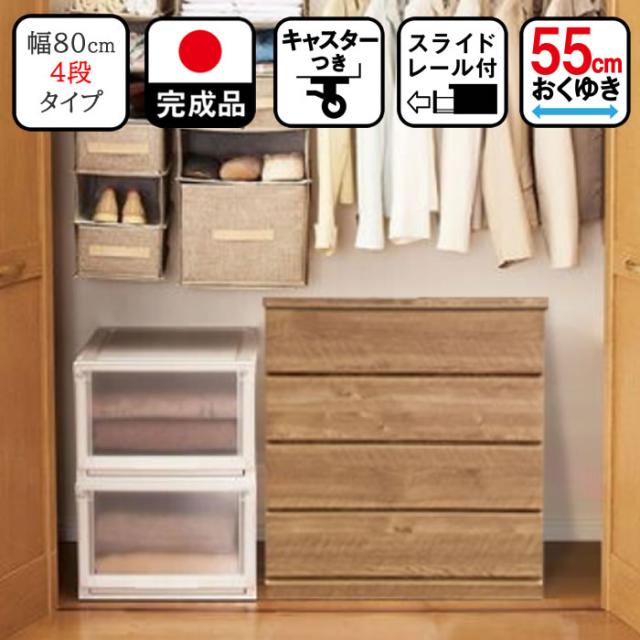 押入れ収納 キャスター (80cm幅4段 スフレ) 完成品 木製 日本製 クローゼット 収納 キャスター付き 押入れチェスト 幅80 奥行55cm 奥行40cm 押し入れ収納 収納ケース 引き出し 引き出し クローゼットチェスト たんす 収納棚 整理棚 押入 収納ボックス 奥行55 棚 4段