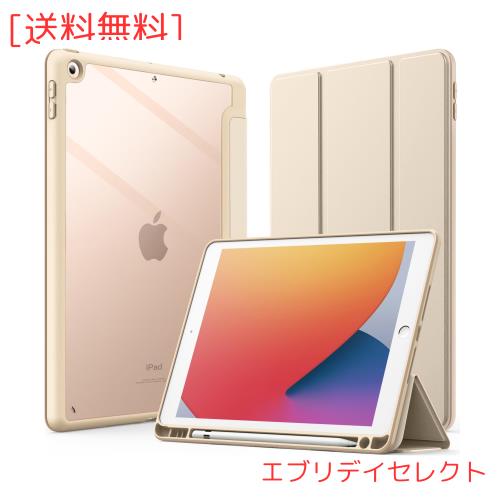 JEDirect iPad 10.2インチ ケース(第9/8/7世代、2021/2020/2019モデル用) Pencil収納可能 透明バックカバー 薄型 スタンド 衝撃吸収 タブレットカバー オートウェイク/スリープ機能