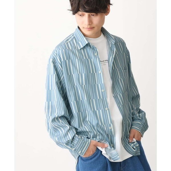 イレギュラーなストライプ柄プリントを施したワイドシルエットシャツ。
