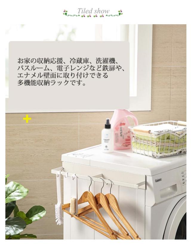 | 縦向き・横向き使用OK! 多機能マグネットラック 磁石で洗濯機に簡単取り付けるマグネットハンガー収納ラック。 取り出しやすく、使った後はコンパクトに収納できます。 洗濯ハンガーをスリムに一括収納!縦向きにも使用できます! 縦向き使用時に3段に分かれているので、ハンガーの種類ごとに使い分けても便利。 角にシリコンカバーがついているので、傷がつかないのが嬉しい♪ お家の収納応援、冷蔵庫、洗濯機、バスルーム、電子レンジなど鉄扉や、エナメル壁面に取り付けできる多機能収納ラックです。 | |