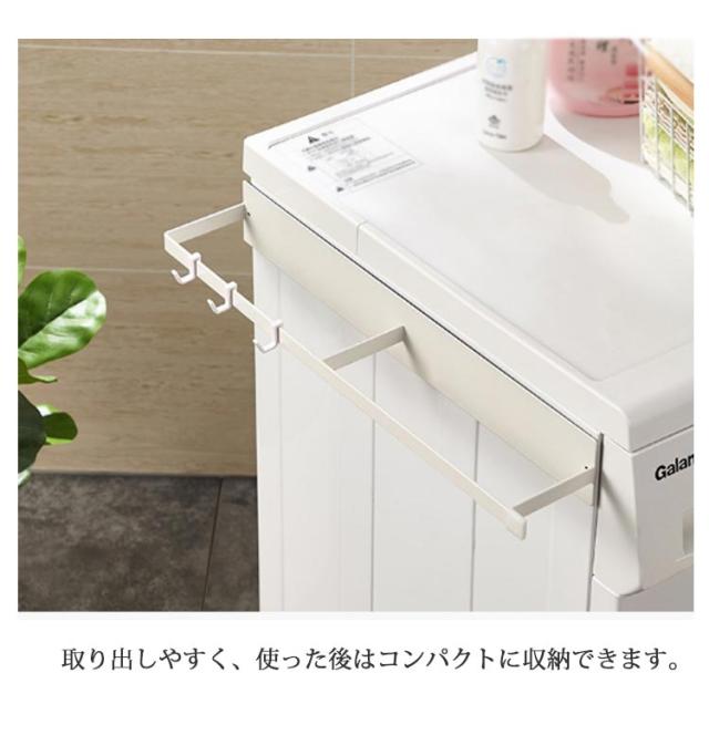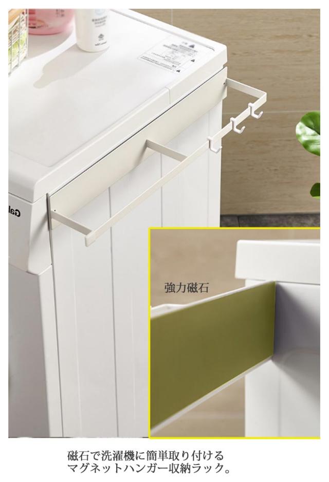 マグネット洗濯ハンガー収納ラック マグネット 収納ラック 洗濯機 棚 ハンガー 洗面所 脱衣所 ランドリー 洗濯 収納 整理 スッキリ 磁石 強力 隙間 スリム プレート ホワイト ブラック 白 黒 シンプル おしゃれ 浴室用