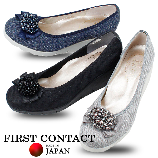 ファーストコンタクト 日本製 ウェッジソール パンプス 低反発 歩きやすい FIRST CONTACT ビジュー 【レディース】