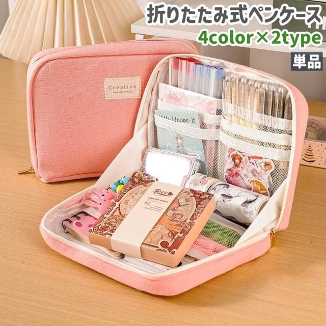 ペンケース 筆箱 単品 子供 男の子 女の子 大人 筆入れ 折りたたみ式 グレー ピンク 緑 オフホワイト 帆布 キャンバス シ