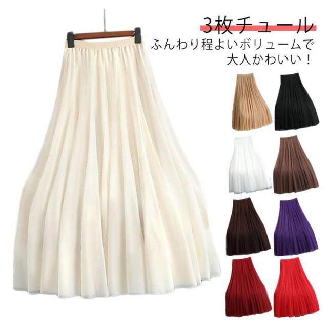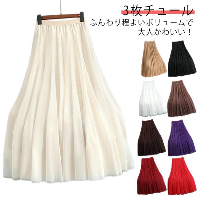 Aライン スカート スカート プリーツスカート フレアスカート チュールスカート ウエストゴム 通勤 マキシスカート ふんわり ひざ下 体型カバー お洒落 レディース きれいめ おしゃれ ボトムス 通学 入園式 卒業式 可愛い