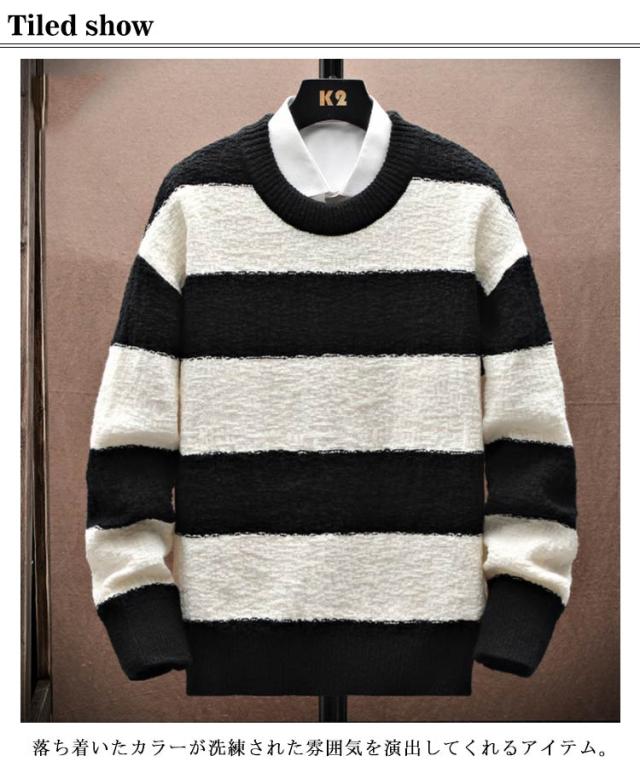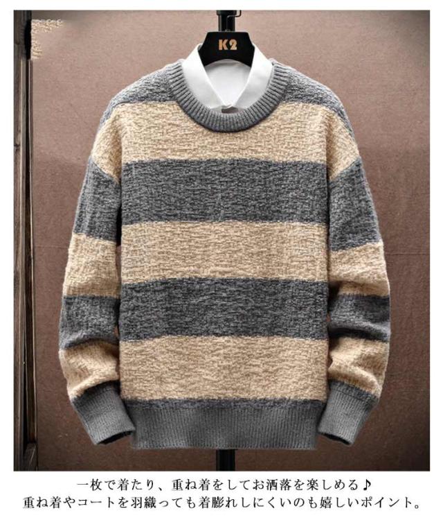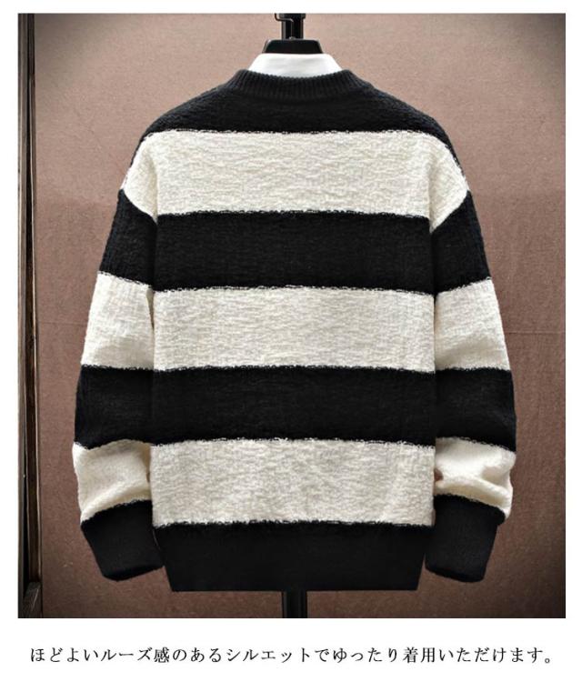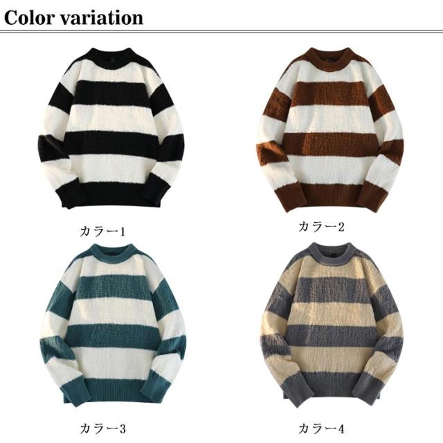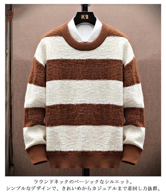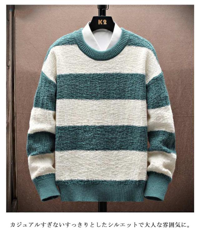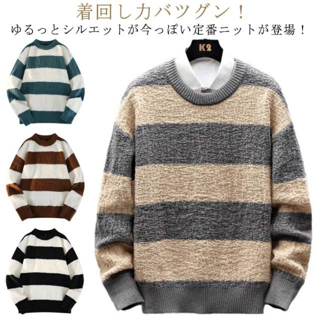 ボーダー柄 ニットセーター 長袖 送料無料 ニット ゆるニット セーター 春物 プルオーバー メンズ 丸首 クルーネック 秋冬 あったか 暖かい トップス 厚手 ふわふわ 防寒 保温 インナー シンプル 送料無料 カジュアル オシャレ