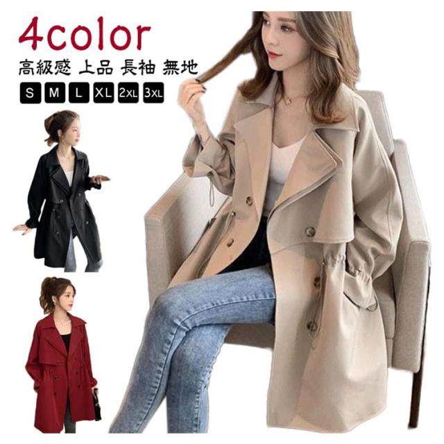 | 【4color】【S-3XL】 通勤・通学に、就職活動でのリクルートスーツに、ママさんはお子さんの学校行事にも幅広く着まわしていただけます。 ウエストは紐付きなので、紐を締めれば、美しいAラインシルエットになって女性らしい優雅を演出してくれるAラインコートです。 春から秋までロングシーズン愛用できる、春アウターの定番! 少し長めの着丈が気になる腰回りをカバーし体型カバーも叶います。 | |