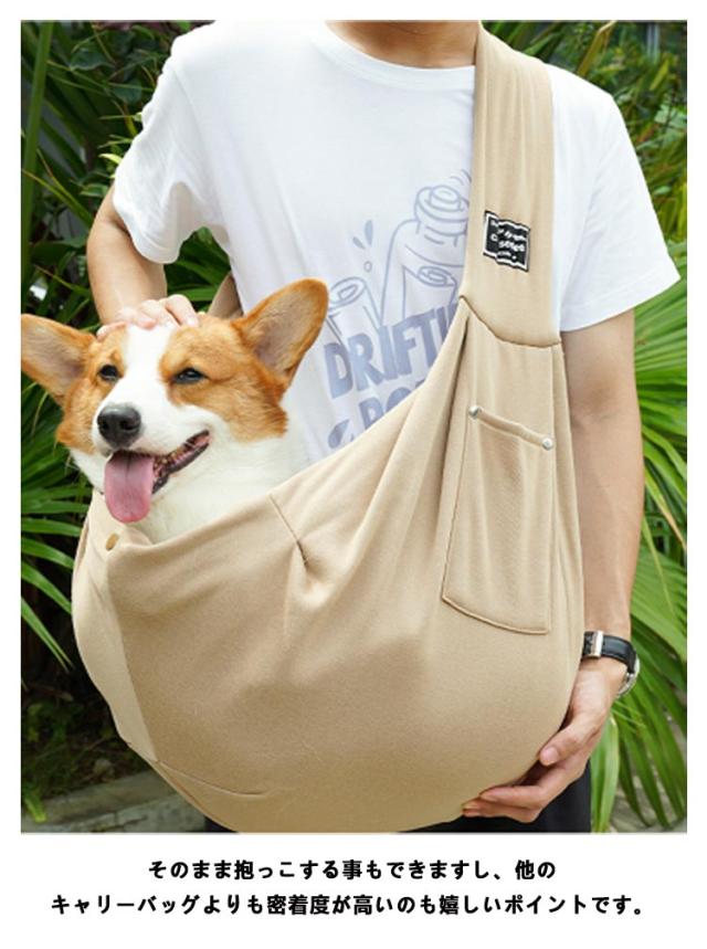 | 大事なワンちゃんとの密着度が高く、双方に安心感を与えるドッグスリングです。 肩ひもは幅広にデザインしております。ご主人様の肩への負担も軽くでき斜めがけするのにも楽チン。 そのまま抱っこする事もできますし、他のキャリーバッグよりも密着度が高いのも嬉しいポイントです。 飛び出し防止のベルトもあります。サイドにはペットボトルの入るサイズのポケットがあります。 お散歩・お出かけ・旅行に、いつでもどこでも一緒に快適にお出かけできるペットスリング。 | |
