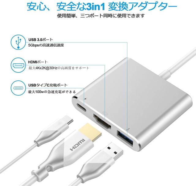 Switch 3in1 Type-C to HDMI変換アダプタ 任天堂スイッチ ドック HDMI+USB+Type-C 変換器 TV大画面 放熱 ケーブル ドック 任天堂スイッチ/Samsung Galaxy S8/S8P/MacBookに 高速充電対応 小型 持ち運びに便利 多機能変換アダプター