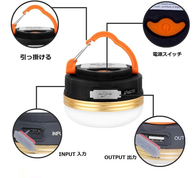 【電球色のLEDランタン】:太陽や炎のように陽気で暖かなオレンジ色の電球を採用、お部屋での普段使いから、アウトドアシーンや緊急時まで、様々な場面で活躍する優れもの。USB給電ライプで、USBケープルを接続して充電可能。1800mahのリチウム電池が内蔵されており、長時間点灯可能となります。*電源指示灯のランプが緑色点滅→充電中、緑色点灯→充電完了、赤色点灯→点灯中。