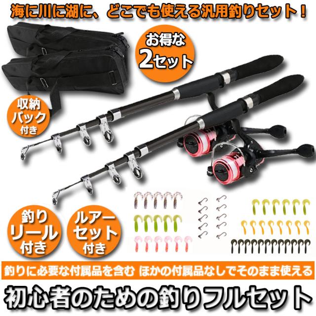 釣り 釣りセット 1.6m 2セット分ルアーセット 釣竿セット 初心者 子供 スピニングリール 海釣り 投げ釣り 釣り具 釣り竿セット 釣具セット コンパクト リール付きロッド ルアー ライン付 釣りバッグ付き