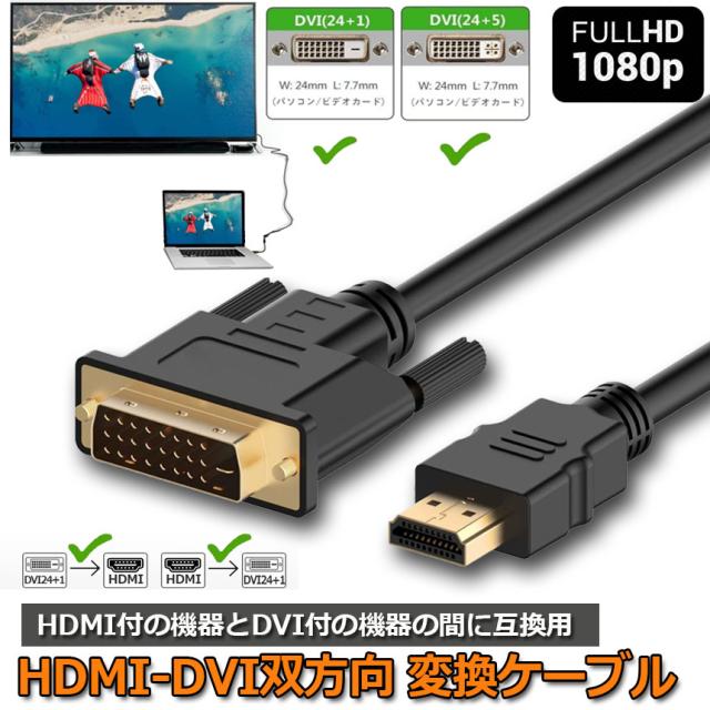 HDMI - DVI 双方向対応 変換ケーブル HDMI to DVI/DVI to HDMI どちらも接続可能 1080P高解像度 1.8m フルHD 金メッキ端子 タイプAオス-DVI 24+5 / 24+1 に対応