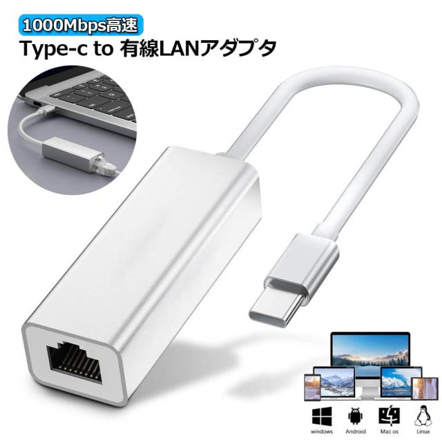 USB Type-C to Lan 変換アダプター 10/100/1000Mbps rj45 イーサネット LAN有線ネットワーク コンバータ アルPC ノートパソコン タブレット Windows Android MacBook/pro ChromeBook Dell XPS対応