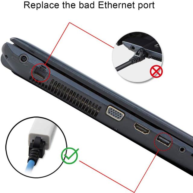 10/100 BASE-Tの規格のRJ-45コネクターを提供し、USBを搭載されたコンピューターをイーサネットネットワークに接続します。