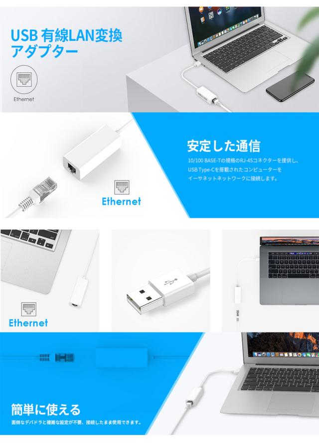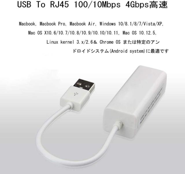 USB 有線LAN 変換アダプター 有線LAN RJ45 変換アダプタ ギガビットネットワークコンバーター 10/100Mbps RJ45 ethernet アダプタWindows/MacOS対応