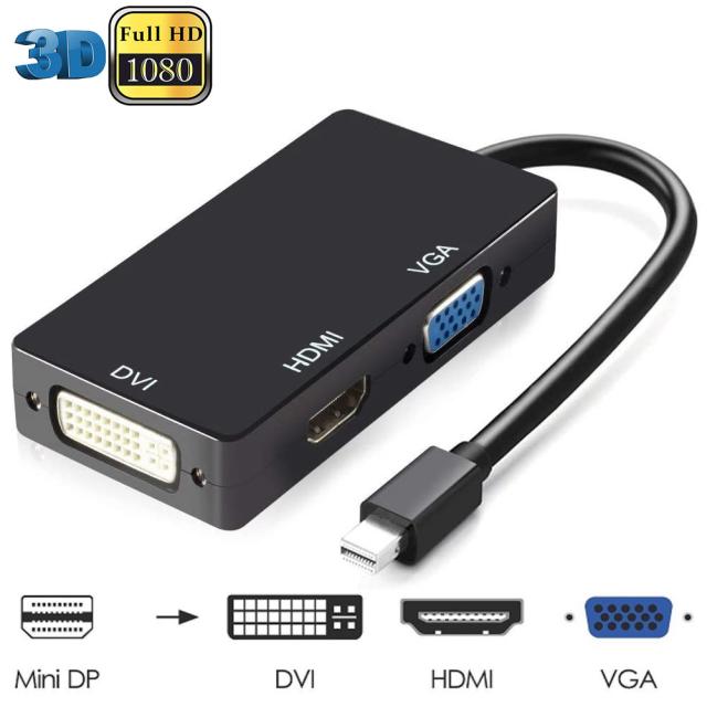 3in1 Mini Displayport to HDMI DVI VGA 変換 アダプター Thunderbolt to HDMI Surface pro 対応 ビデオアダプタ Mac Book Air/Mac Book Pro/iMac/Mac mini/Surface pro 1 2 3対応 ブラック