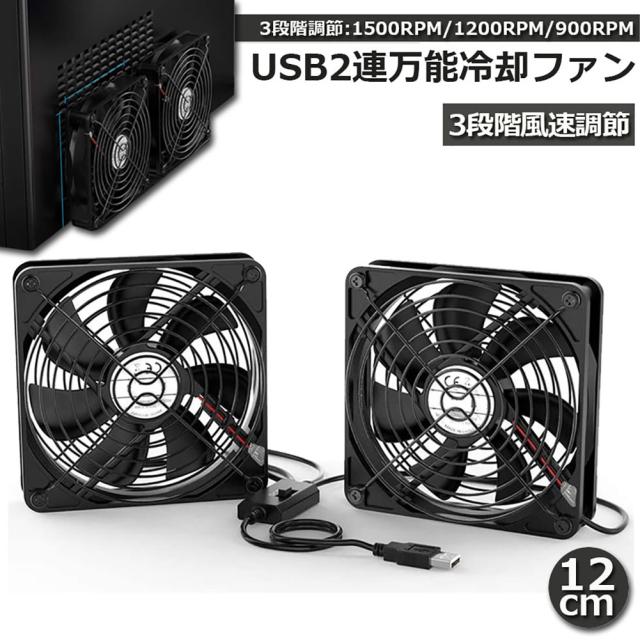 USBファン 12cm 2連 3段階調節 静音 スピード 冷却ファン 送風機 扇風機 強力 パソコン 1500RPM/1200RPM/900RPM USB FAN 卓上 Xbox PS ゲーム機 ルーター 冷却 対応 扇風機 薄型 サイレント 7枚羽根 省エネ