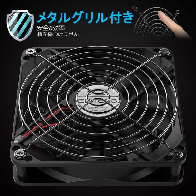 金属製フレーム搭載、動作中ケガ防止のため安全設計されます。高品質ボールベアリングモータを採用して、寿命は6.8万時間ぐらいで、普通のファンの2倍となります。
