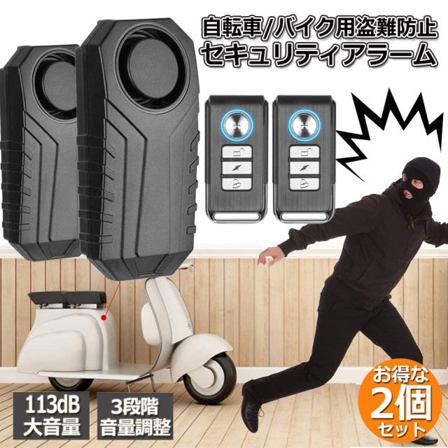 防犯ブザー 自転車 バイク 盗難盗難防止 2個セット グッズ 防犯ブザー 車 セキュリティアラーム 3段階音量調整 7段階振動感度 振動アラーム 113dB 大音量 自転車 自動車 自宅 ドア 窓 防犯対策