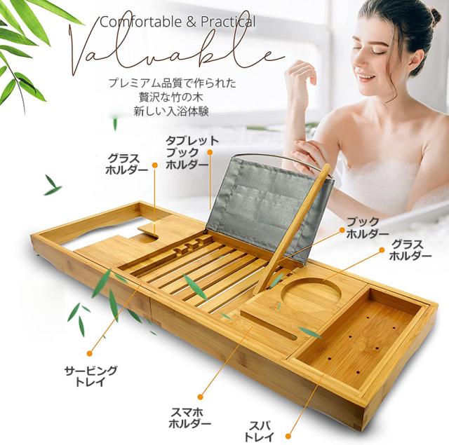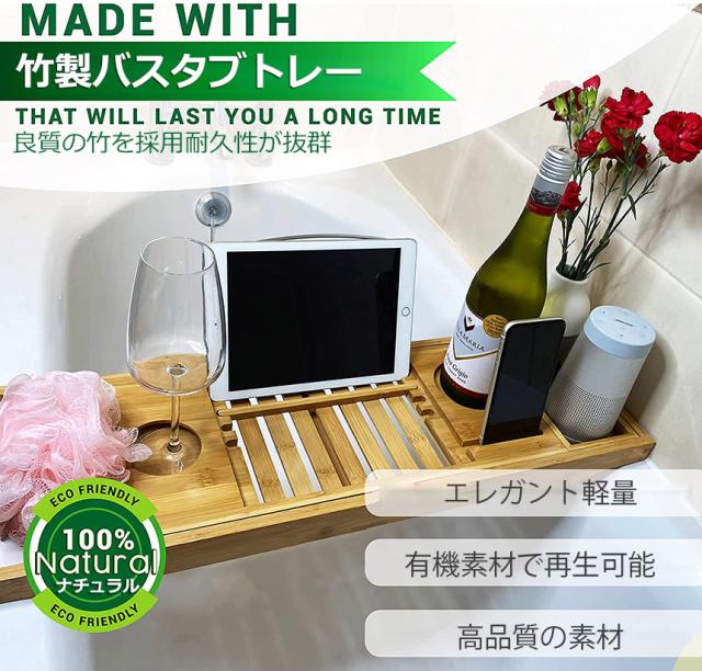 バスタブトレー バスタブラック 浴室用ラック 竹製 お風呂 物置 バステーブル バスラック バスグッズ バスブックスタンド 伸縮式 ズレ防止 大容量 水切り 収納 大容量 水切り お風呂用品