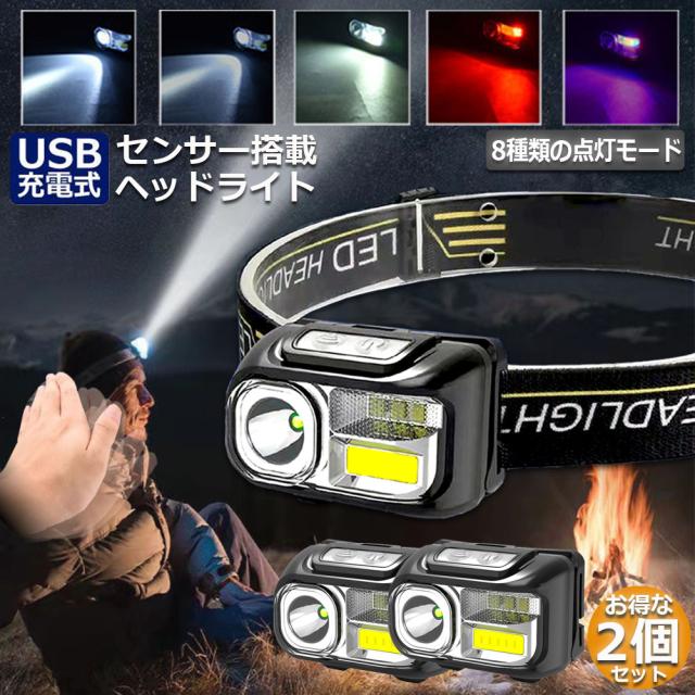 ヘッドライト 充電式 ledヘッドライト 2個セット アウトドア用ヘッドライト SOSフラッシュ 8つ点灯モード 軽量 角度調整可 防災 停電時用 登山 夜釣り キャンプ アウトドア ハイキング
