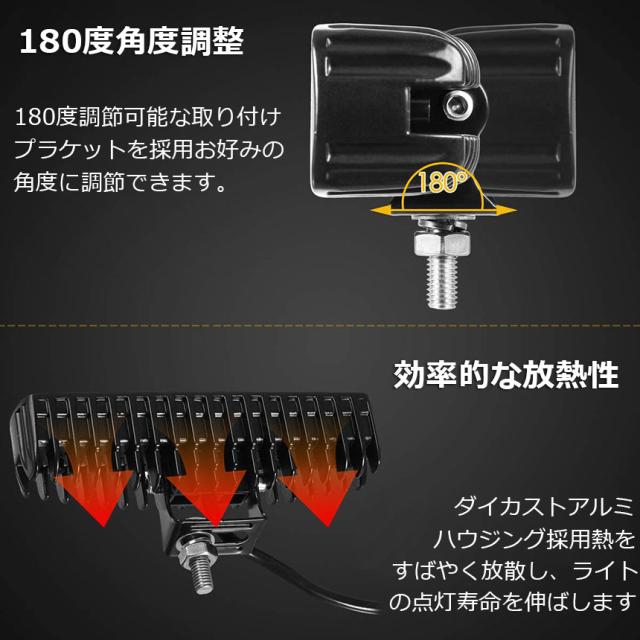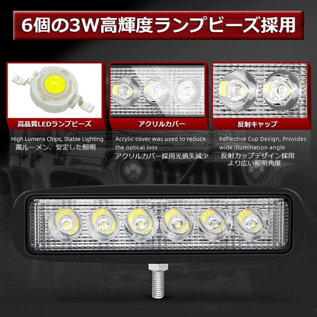 18W LED作業灯 ワークライト 10個セット 6連 デッキライト LED投光器 18w 12v 24v 兼用 防水 防塵 防震 取付け自由 省エネルギー コンボビーム 集光 投光両立 各種作業車に対応 前照灯