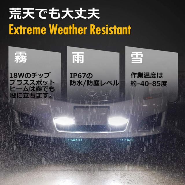 【製品仕様】:16.0(L)x5.0(W)x6.0(H)CM。 LED電力:18W (3W型高輝度LEDx6個)。 色温度:6000K、ホワイト発光。 全光束:1500 LM。ビーム角:スポットビーム。【性能】:IP67防水等級、100%防塵、防水、最大1mの水を30分間防水。防水、防塵、耐衝撃および抗爆発。アルミ基板なので、高温にも耐えられる非常に優れた耐熱性・放熱性を実現!!!さらに強い耐食性と一定の絶縁性を持って、とっても便利です。