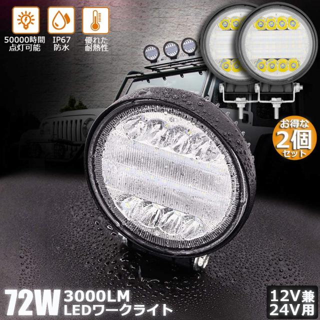 72W LED作業灯 ワークライト デッキライト 2個セット LED投光器 72w 12v 24v 兼用 防水 防塵 防震 取付け自由 省エネルギー コンボビーム 集光 投光両立 各種作業車に対応 前照灯