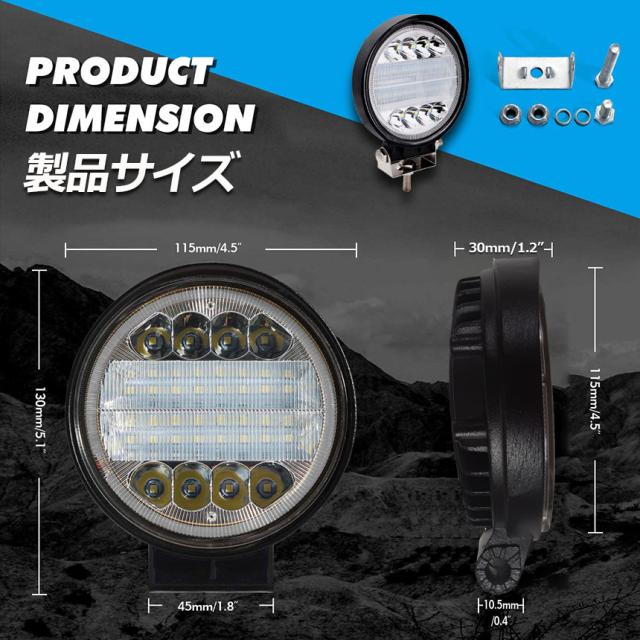 【製品仕様】:11.5(L)x11.5(W)x3(H)CM。 LED電力:72W (3W型高輝度LEDx24個)。 色温度:6000K、ホワイト発光。 全光束:3000LM。【性能】:IP67レベル全密封ウォータープルーフ仕様。雨、雪、湿気、錆び、ホコリなどが侵入しにくい構造、異常な天候にも影響をけることが少なく、安定した照明を提供します。