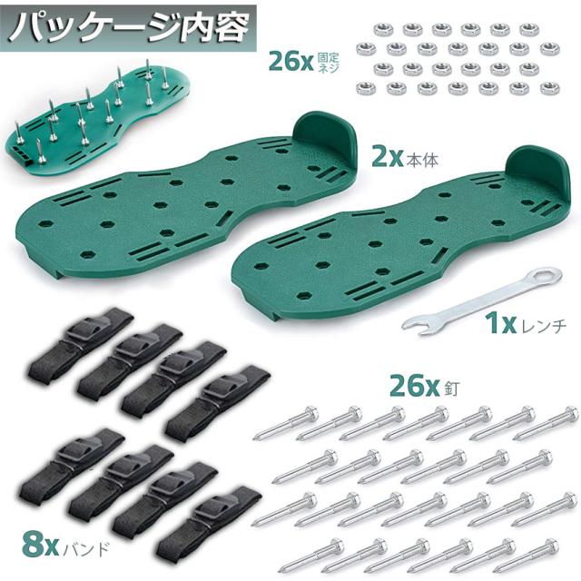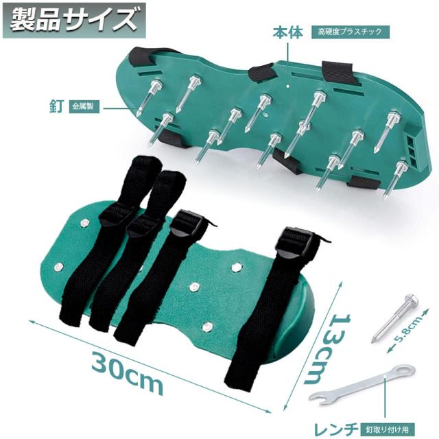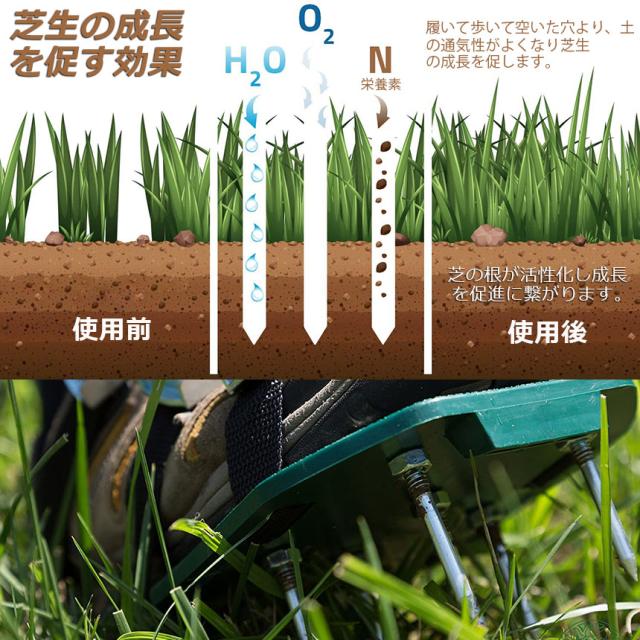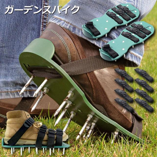【 ガーデンスパイク】履いて歩くだけ芝生の穴あけ作業が簡単に芝生のお手入れに重要な穴あけ作業。複雑な機器や多額の費用に投資する必要はありません。ガーデンスパイク履い芝生の上を体重をかけながらゆっくり歩くだけ。足の裏のスパイクで穴あけが簡単にできます。歩くだけで穴あけ作業ができるので、とっても簡単。面倒な芝生のメンテナンスラクラクになります。【効果】土に穴をあけ空気を送り、土壌微生物を活性化 、土の軟化 、保水性や通気性の向上 ・芝生を適度に傷めて成長を活性化し、発根促進 ・古い根を切る 芝生を綺麗に保つ事ができます。
