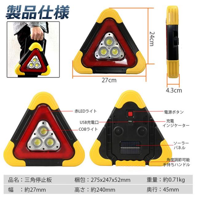三角停止板 4個セット 作業灯 投光器 三角表示反射板 三角停止表示板 LED デルタストップ 180度調整 USB充電式 折り畳み式 車警告灯 道路用 事故用 応急処置 停電 防災対策 登山 夜釣り 夜間作業 車修理 追突事故防止