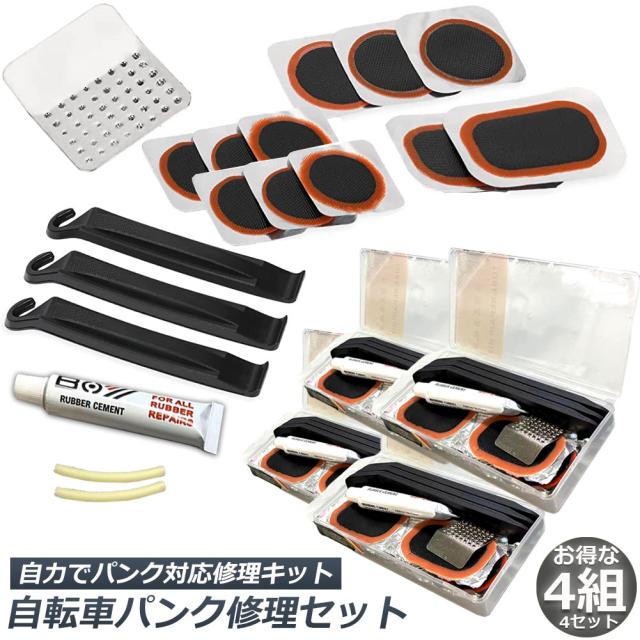 パンク修理キット 4個セット 自転車 修理 応急用 自転車タイヤパッチ 修理ツール 補修用 汎用性 緊急用タイヤ修理セット 自転車タイヤ パッチ 自転車修理道具 便利 補修用 汎用性