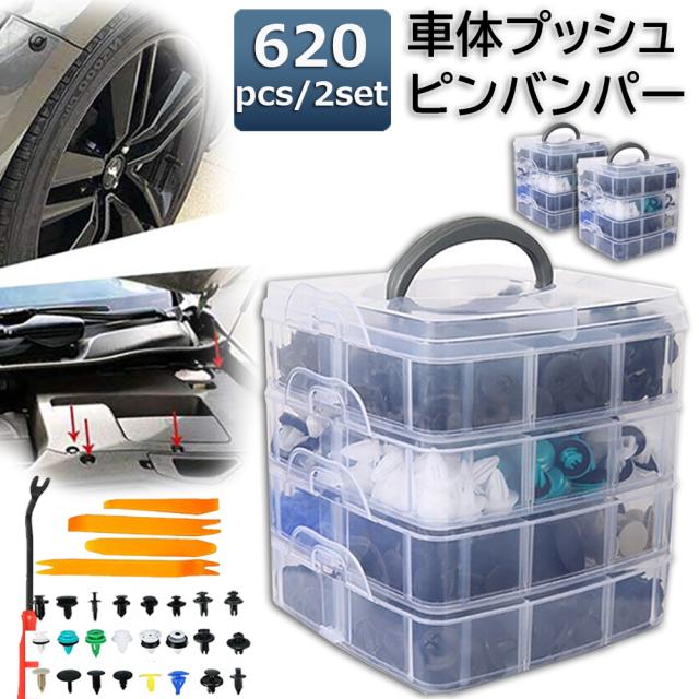 プッシュリテーナーピンリベット 620PCS 2個セット ピンバンパーバックル モールディングクリップキット 自動車ドアパネルファスナー クリップ プラスチックリベット 車 アクセサリー 送料無料