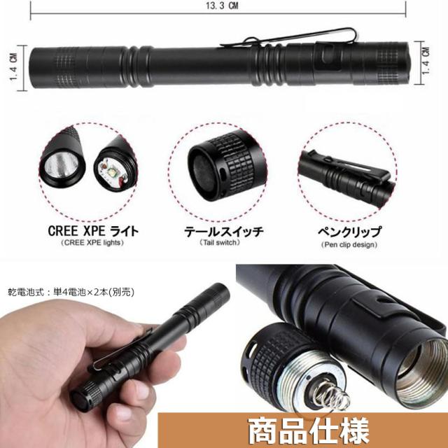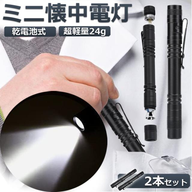 懐中電灯 2個セット ハンディライト ミニ懐中電灯 単4電池 防水 ペンクリップ クリップ付き アルミ合金製 高耐久 携帯便利 作業 防災 ライト 小型 停電 緊急用 コンパクト プレゼント 送料無料