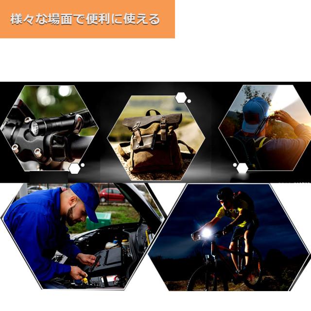 【多用途】ライト本体はアンチスリップデザインで滑りにくく、表面は軍用グレード硬質酸化耐摩処理をし、長い年月を経ても磨損や錆に負けず、きれいに長持ちさせます。キャンプ・夜釣り・山登り・夜道の一人歩き・防犯・護身用・緊急災害時に心強い味方です。