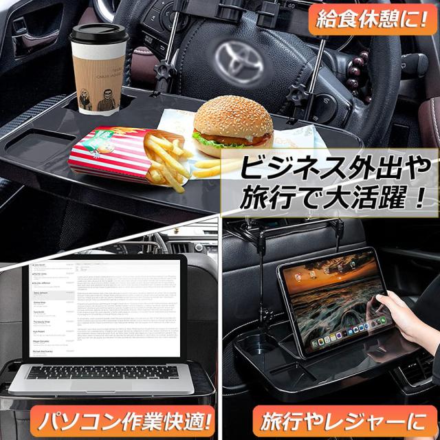 【運転席&後部座席兼用】車のハンドルや後部座席に吊り下げて使える簡易テーブル。車移動が多いビジネスマンの必須アイテム。食事、PC、事務作業、休憩に使いやすいです。