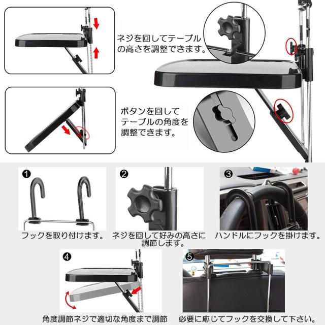 車 テーブル ハンドル テーブル 3台セット 車用テーブル 車載用テーブル 車内食事用テーブル 車用トレイ 角度調整可能 高さ調節可能 安定感 簡単取り付け 後部座席 運転席 折りたたみ コンパクト 収納