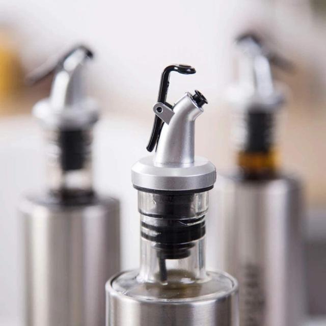 ステンレス ボトル ポアラー ヒンジ フタ付き オリーブオイル ワイン 酒 カクテル ボトルの注ぎ口 オイル瓶 ダブル醤油瓶口