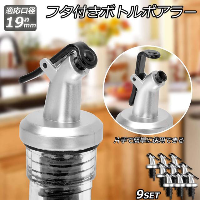 ステンレス ボトル ポアラー フタ付き 9個セット オリーブオイル ワイン カクテル ボトルの注ぎ口 オイル瓶 酒 調味 リキュール 瓶 器具 注ぎ口 定量 適量 送料無料
