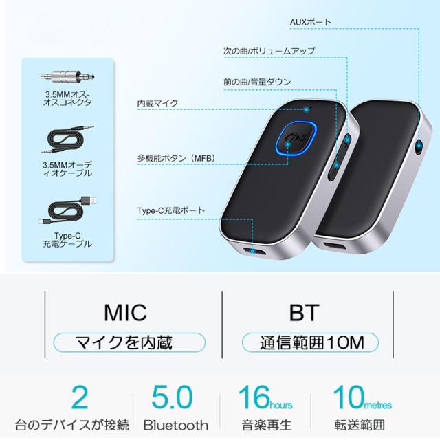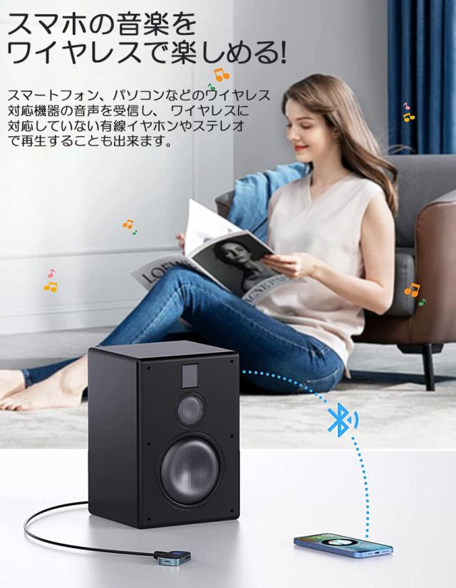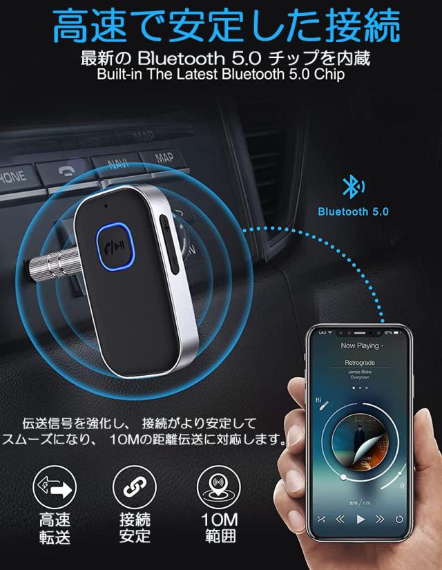 【ワイヤレスで音楽を楽しめる】Bluetooth非搭載のカーオーディオ、ホームステレオ、スピーカー、有線ヘッドホンなどと接続して、ワイヤレスで音楽や通話を楽しむことが可能になります。最新のBluetooth5.0より、安定な接続、速い転送、広い信号範囲を実現でき、音割れ、遅延がない音楽を楽しむしましょう
