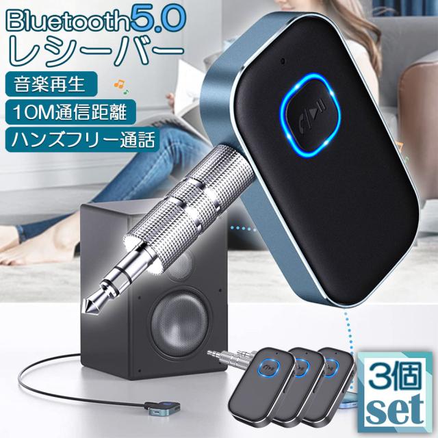 Bluetooth レシーバー 車 AUX 受信機 3台セット ブルートゥース レシーバー Bluetooth受信機 車載 3.5mm 16時間再生 2台同時接続 自動車 ホームステレオ ヘッドフォン スピーカー マイク内蔵 ハンズフリー通話対応
