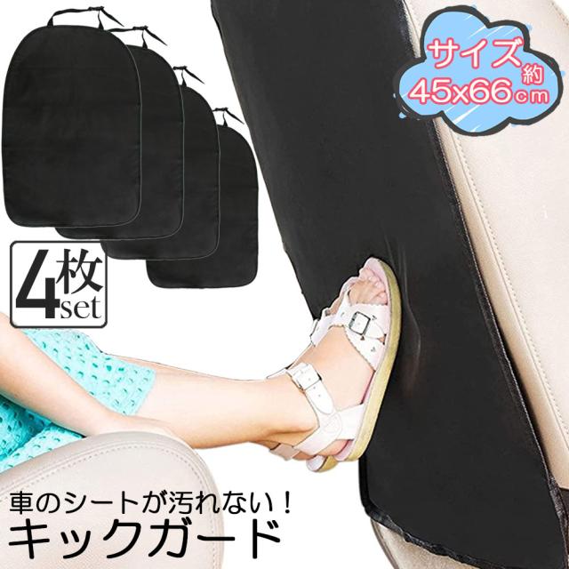 キックガード 車 4枚セット シートカバー キックカバー キックマット バックプロテクター 車用キックマット 車用シートカバー 後部座席 傷 汚れ 防止 シートバックプロテクター カーグッズ 取付簡単 車載 カー用品 車用品