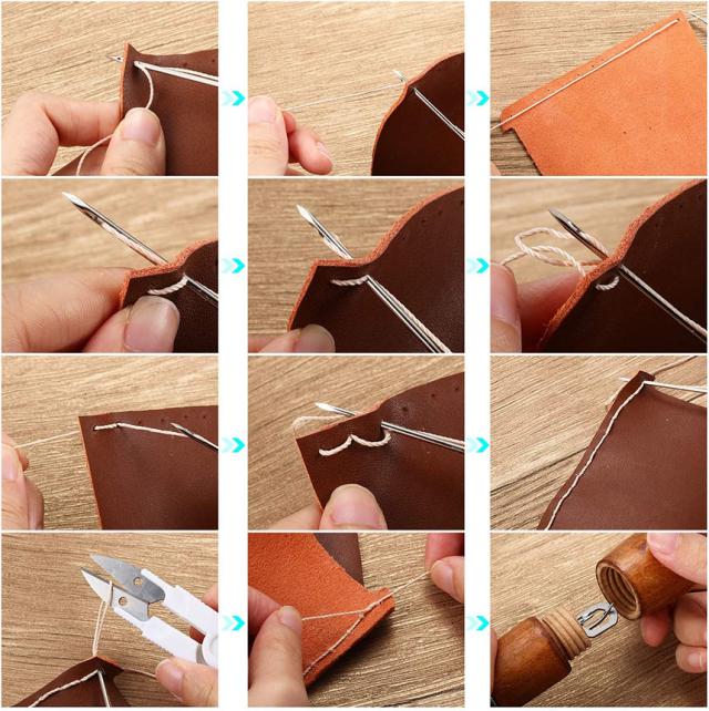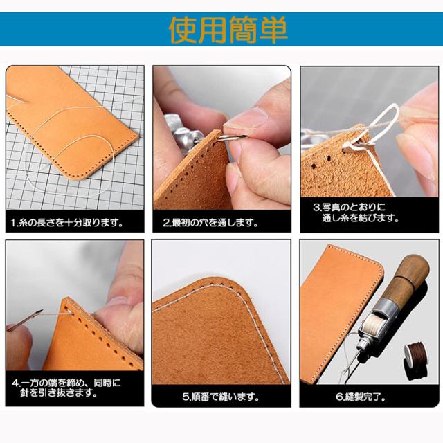 【使用方法】1.針を革や布など縫いたい場所に刺し、反対側へ糸を出した状態で針を抜きます。2.次の場所にもう一度針を